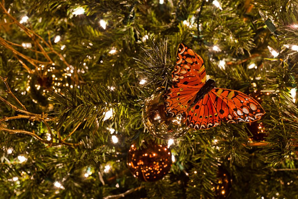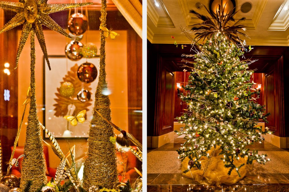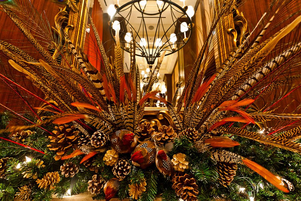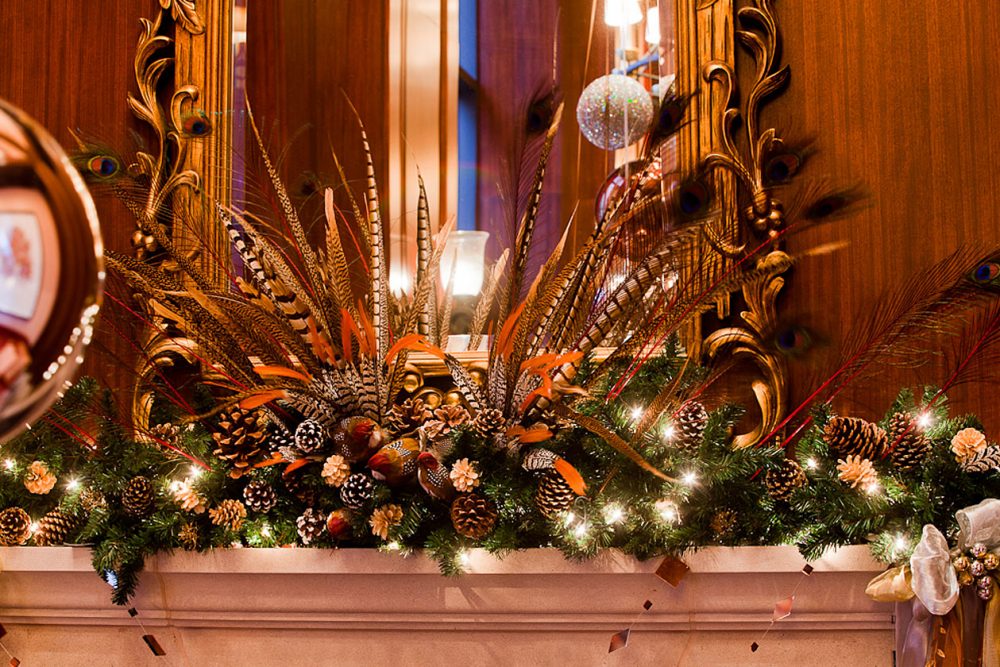 Harbinger Home took this inspiration and incorporated organic, natural materials that created an exotic, memorable display, which included feathers, butterflies and pheasants. In addition, gold, silver and copper branches were embellished with hanging votive lights, strands of moss and nests of pinecones that captured the attention of many.